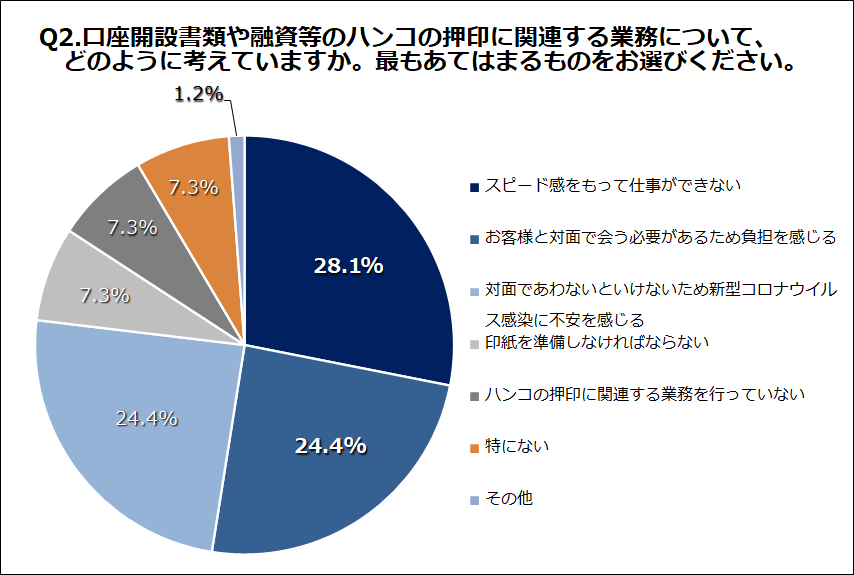 ■28.1%の銀行員が、ハンコの押印に関して「スピード感をもって仕事ができない」と回答