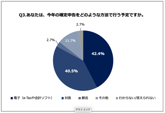 ■今年の確定申告「電子(e-Taxや会計ソフト)で行う予定」という回答が42.4%