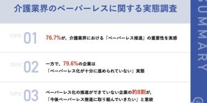 介護関連事業経営者の76.7%が「ペーパーレス化」の重要性を実感、一方で、約8割の企業は「十分にペーパーレス化できていない」実態 〜課題は「現状の業務で余裕がない」「予算がない」 「どう進めればいいか分からない」「ITリ … 続きを読む 【リサーチ】介護業界のペーパーレスに関する実態調査