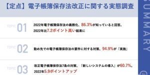 【2022年改正 電子帳簿保存法の対応状況を定点調査】電子帳簿保存法の義務化について、86.3%が「認知」2022年比7.2ポイントアップ 〜対策は、「新しいシステムの導入」が60.7%で最多、昨年比5.9ポイント上昇〜 … 続きを読む 【リサーチ】電子帳簿保存法改正に関する実態調査