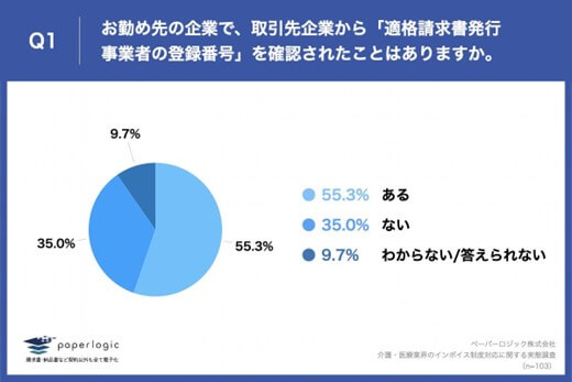 ■55.3%が「取引先企業から適格請求書発行事業者の登録番号を確認された」経験あり