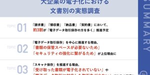 【1000名以上の大企業|電子化実態調査】 「請求書」の受領方法、「100%電子受領」「電子受領が紙より多い」企業は60.6%にのぼる。 一方で、請求書のスキャナ保存を実施する企業の60.0%が「受け取った書類が電子化さ … 続きを読む 【リサーチ】大企業の電子化における文書別の実態調査